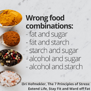 I’ve recently enjoyed exploring the benefits of the keto diet (as well as low-carb versions of this), and other lifestyle choices to prevent weight gain, support mental health, reduce inflammation, and slow the aging process. I was initially drawn to the title of the book, The 7 Principles of Stress: Extend Life, Stay Fit and Ward off Fat by Ori Hofmekler, but soon discovered this book is packed with interesting research and recommendations. One part that really resonated with me was the food combinations, which makes perfect sense, reminding me of the old saying, “you can’t have your cake and eat it too”. The below is an excerpt from the book: